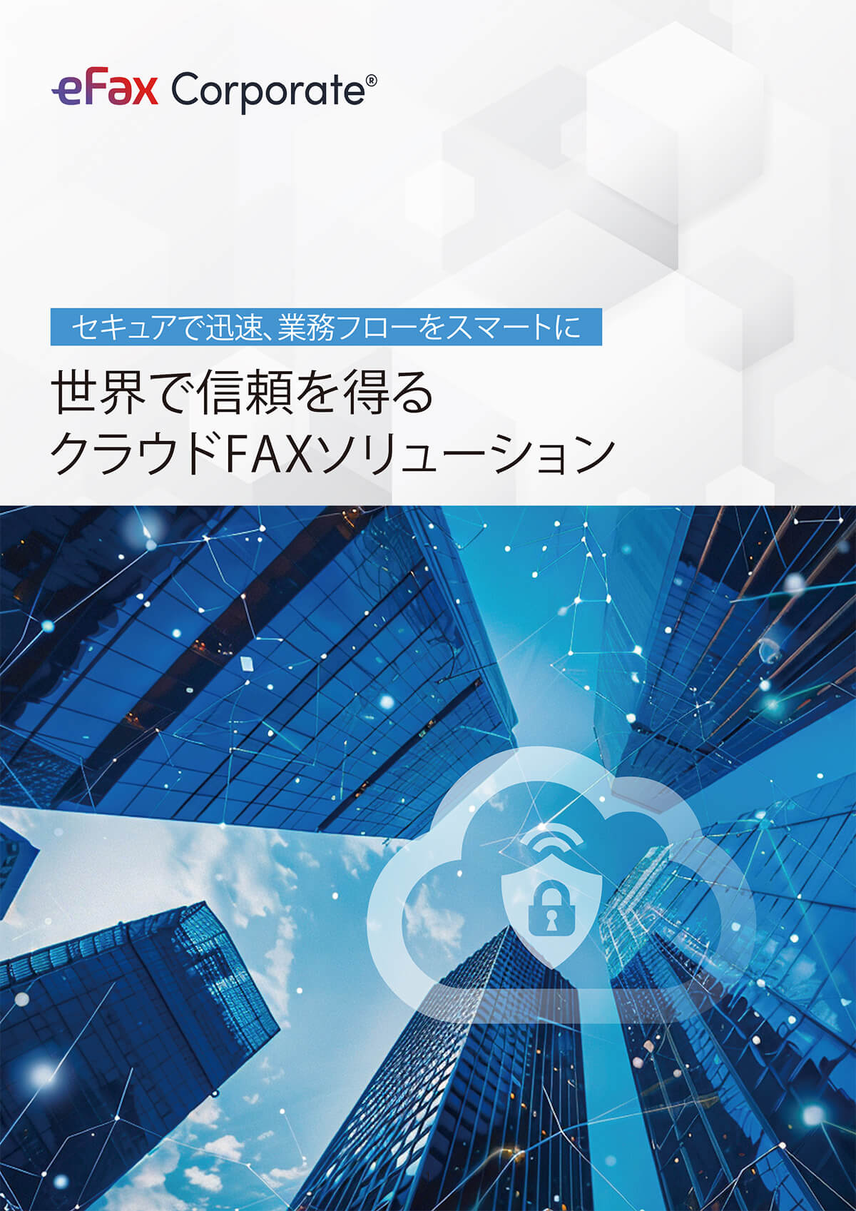 eFax Corporateのサービス概要から機能、料金、簡単なケーススタディをまとめております。無料でダウンロードしていただけますので、ご希望の際は右記のフォームよりダウンロード画面へお進みください。